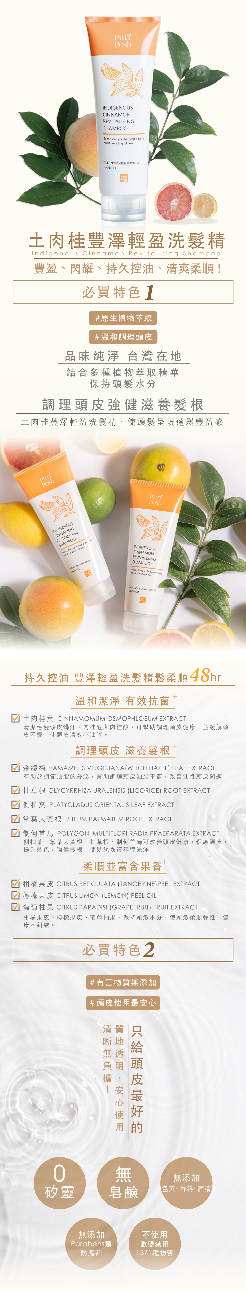 調理頭皮強健髮根,去除多餘油脂,使頭髮呈現蓬鬆豐盈感,非常適合全家大小使用!